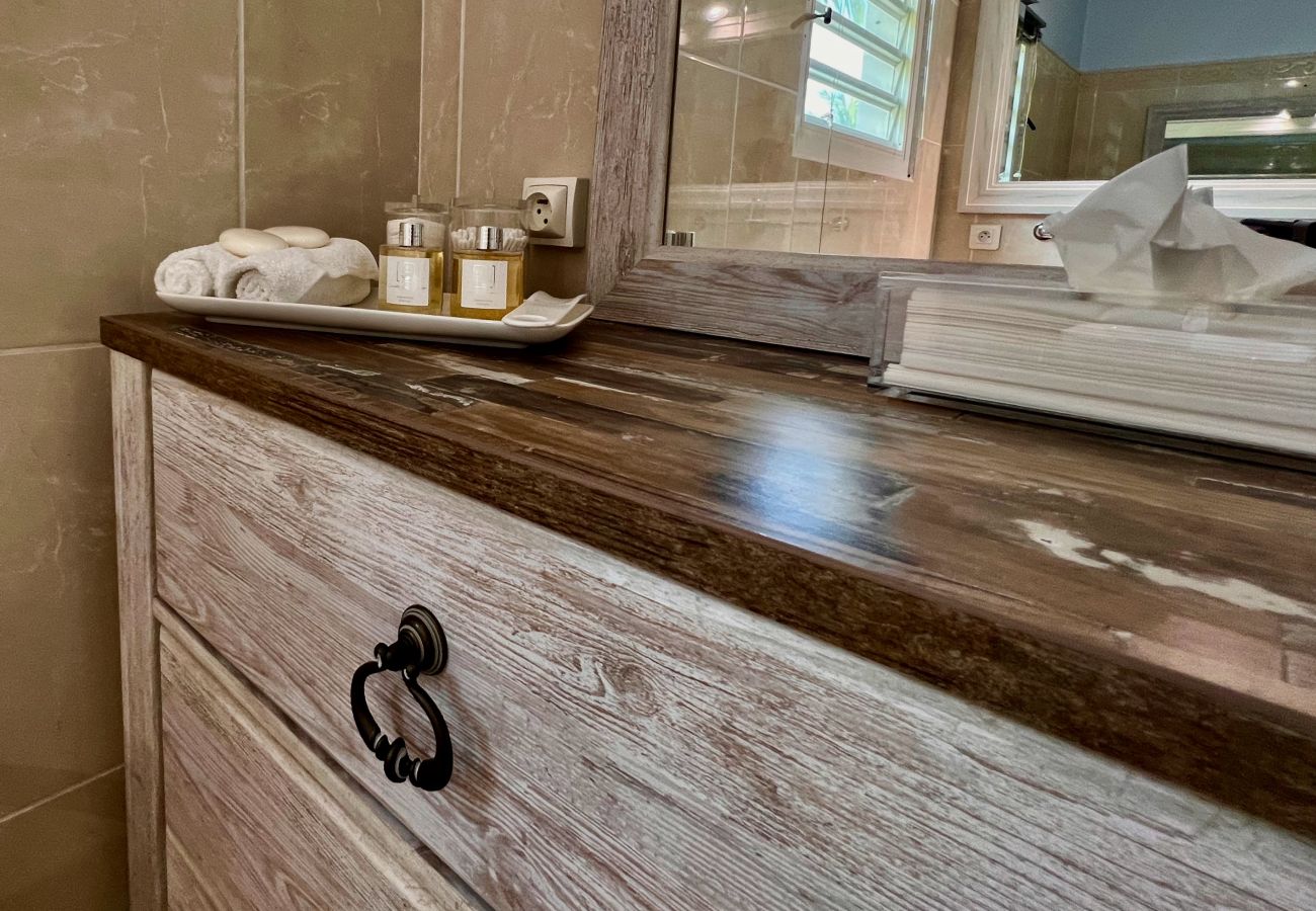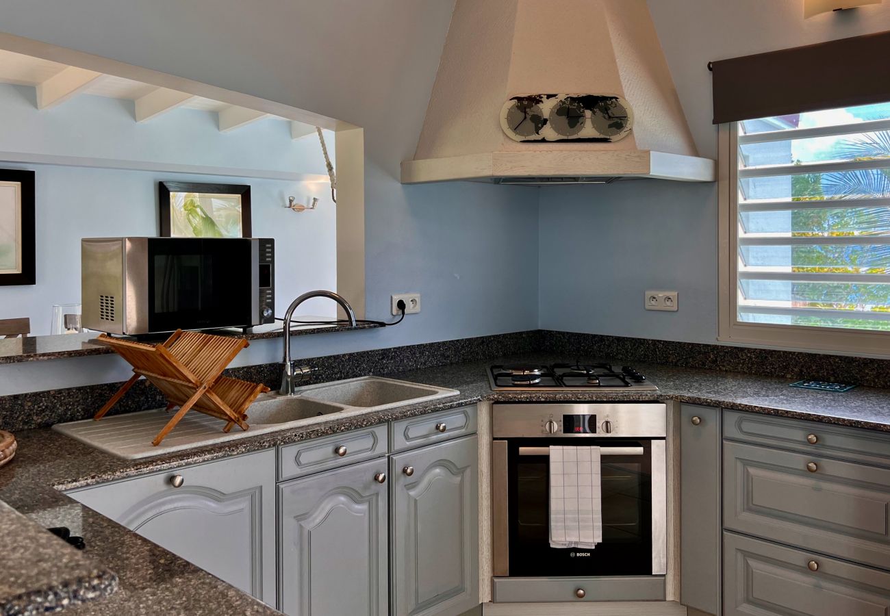 Sa cocoteraie privée borde la plage, un sentier de quelques mètres vous permet d’accéder à la mer et de vous baigner dans les eaux turquoises de la Caraïbe ou de vous allonger sur le sable doré des Antilles. Vous pouvez accéder aux restaurants de flamand Le Cheval Blanc et La Baie des Anges lors d’une balade le long de la plage. Vous pouvez également vous rendre à pied à la plage isolée de Colombier par le sentier pédestre le long du littoral.