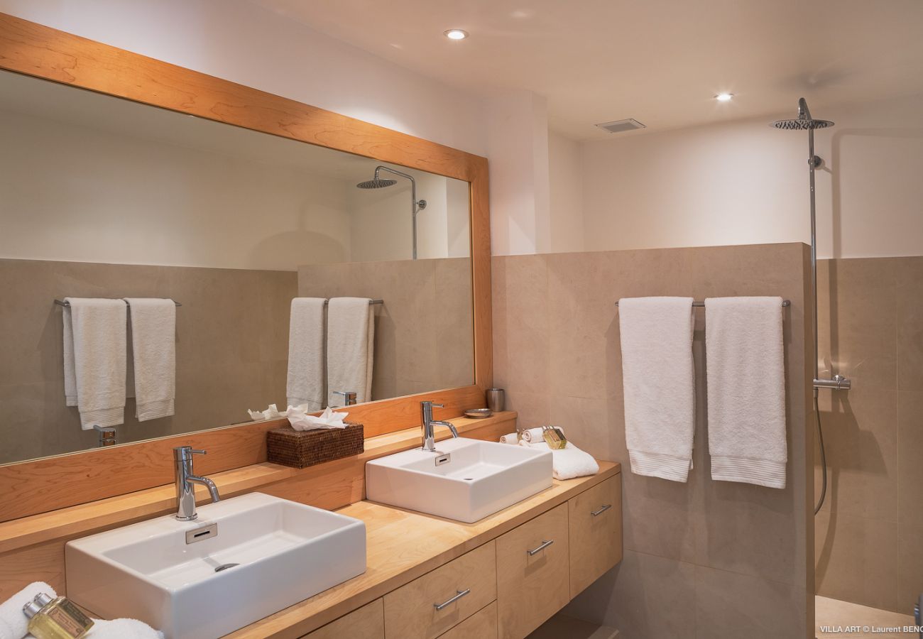 La villa a Saint Barthélemy ha 3 camera(e) da letto e capacità per 6 persone. Alloggio di 108 m². Ha giardino, giardino arredato, 100 m² della terrazza, barbecue, ferro da stiro, cassaforte, accesso internet (wifi), asciugacapelli, aria condizionata in tutte la stanze, piscina climatizzata privata, parcheggio all'aperto in in struttura, 1 ventilatore, 1 Televisore, tv satellitare (Lingue: Inglese, Francese), Dvd.La cucina americana, a vetroceramica, è attrezzata con frigorifero, microonde, forno, congelatore, lavastoviglie, stoviglie/posate, utensili da cucina, caffettiera, tostapane, bollitore e spremi agrumi.
