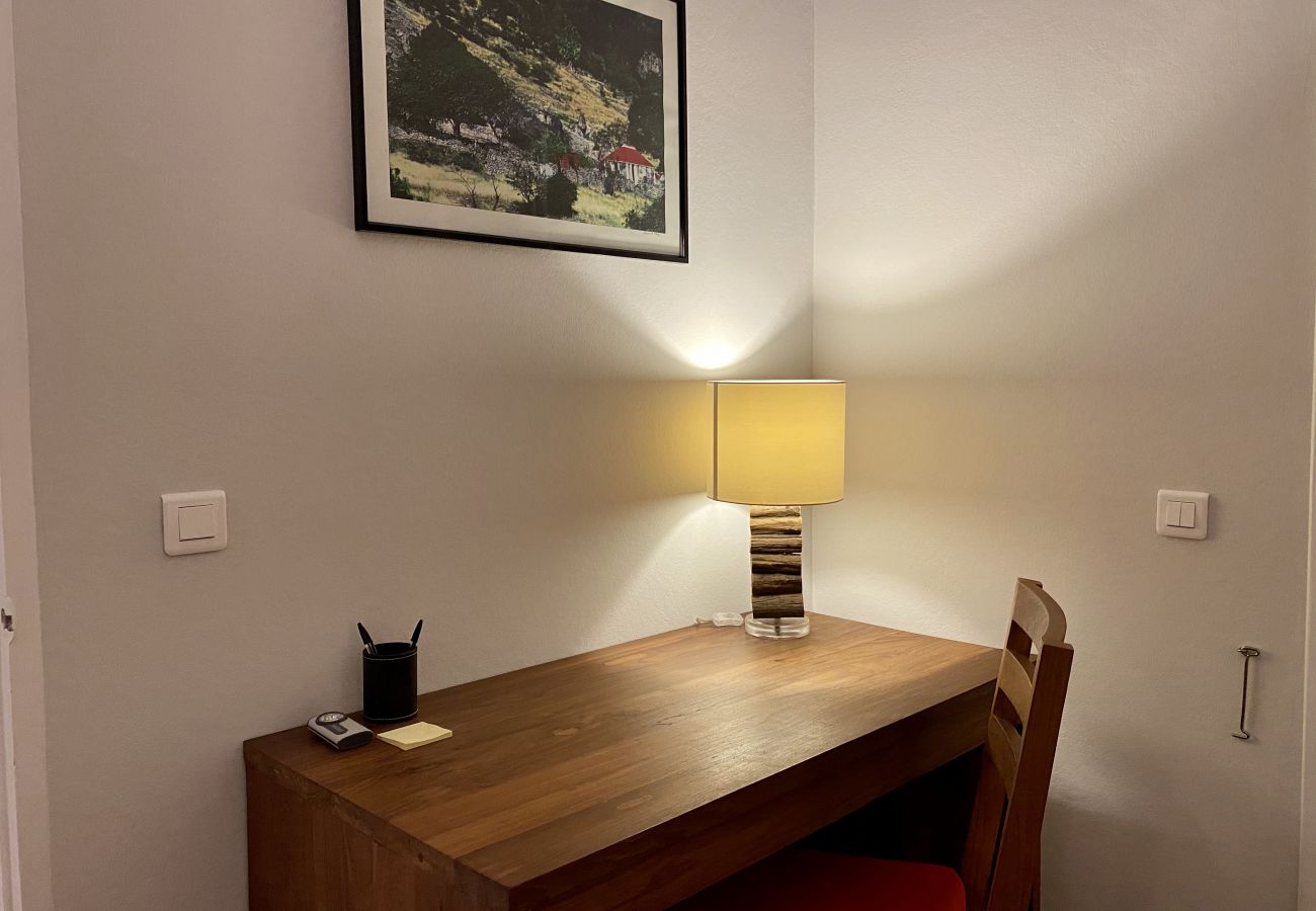 The fully equipped American kitchen will delight cooking enthusiasts: oven, refrigerator, freezer, coffee machine, dishwasher, microwave, and all necessary utensils. A TV corner with satellite channels in French and English completes the living space.
