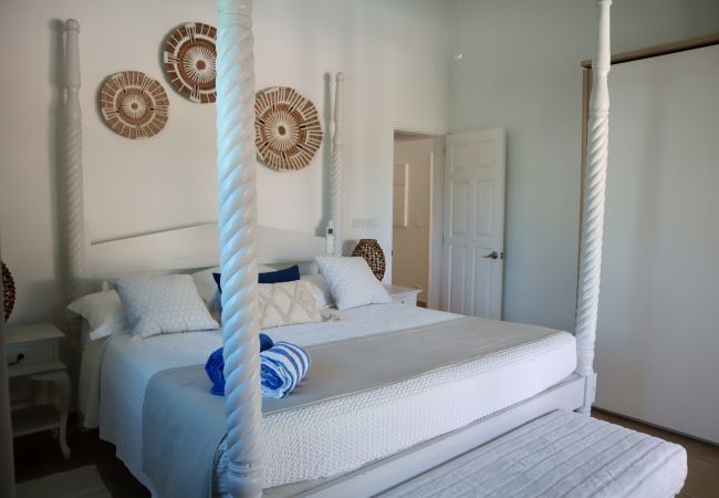 The master bedroom with king-size bed opens onto the pool terrace. The second, with a king-size bed that can be divided into two twin beds, is accessible from inside the villa. Both offer an excellent night's sleep. Both bedrooms share a bathroom.